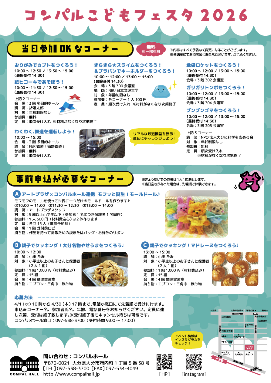 コンパルホール窓口:097-538-3700(受付時間9:00~17:00)